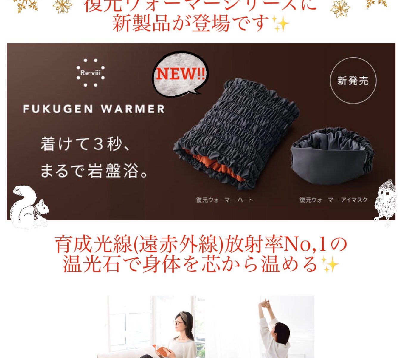 “復元アイマスク”と“復元ハートウォーマー”が