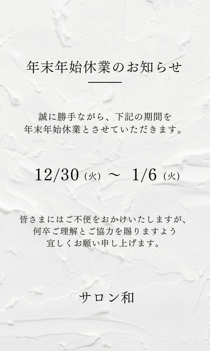 いつもサロン和をご利用いただき、誠にありがとうございます。